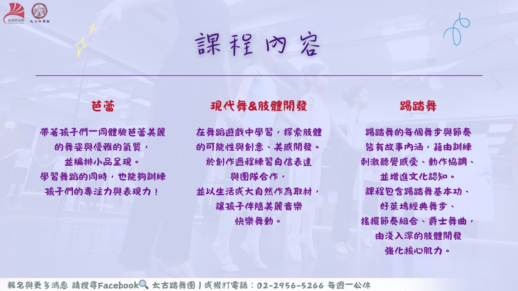 課程地點|板橋放送所 太古踏舞蹈劇場(新北市板橋區民族路130巷67號)